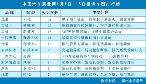 中國(guó)汽車質(zhì)量網(wǎng)2012年1月上半月投訴排行