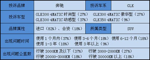 今年下半年以來(lái),中國(guó)汽車(chē)質(zhì)量網(wǎng)集中收到了部分車(chē)主對(duì)奔馳GLK的投訴。投訴車(chē)主中的九成以上認(rèn)為車(chē)輛存在時(shí)速60公里以上車(chē)內(nèi)出現(xiàn)高頻嘯叫或異響問(wèn)題,涉及車(chē)輛大部分為進(jìn)口奔馳GLK。對(duì)此,中國(guó)汽車(chē)質(zhì)量網(wǎng)在11月21日進(jìn)行了報(bào)道(詳見(jiàn) 奔馳GLK變速箱分動(dòng)器...
