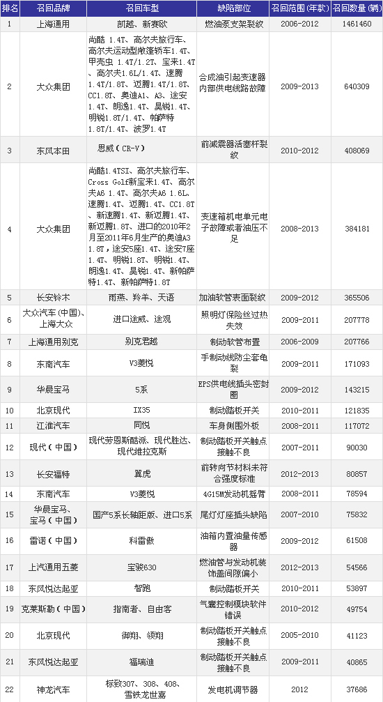 2013年汽車召回總結(jié):531萬輛創(chuàng)紀錄