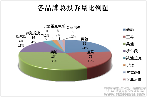 近兩年,高檔轎車在國(guó)內(nèi)銷售量正在逐年上漲,隨著保有量的增加,車輛在使用中出現(xiàn)的問(wèn)題正在逐步顯現(xiàn),在中國(guó)汽車質(zhì)量網(wǎng)中各品牌投訴量參差不齊。 在整體投訴比例圖上顯示,歐系品牌:奧迪、奔馳、寶馬、沃爾沃投訴量占總投訴量的九成,看來(lái)歐系品牌高...