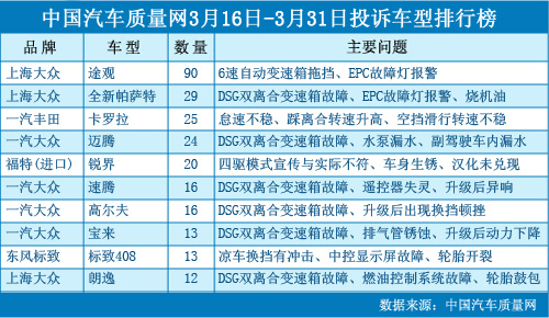 中國(guó)汽車質(zhì)量網(wǎng)2012年3月下半月投訴排行