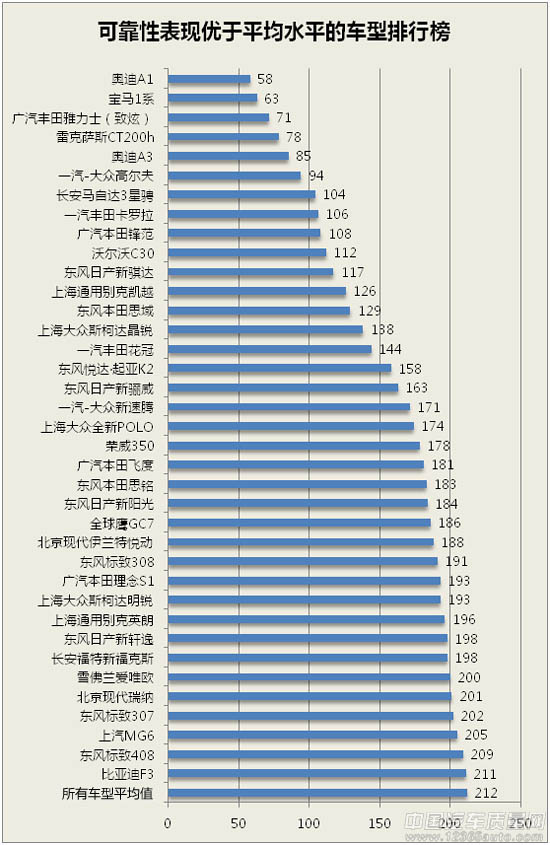 70款國內(nèi)主流家轎可靠性調(diào)查完整報(bào)告