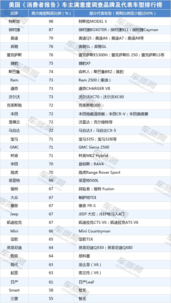 《消費(fèi)者報(bào)告》評(píng)出2015年用戶最滿意車型