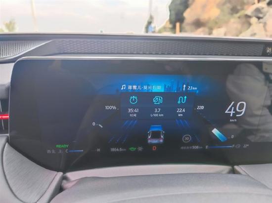 雖然使用了節(jié)能模式,但是從實(shí)際駕駛體驗(yàn)來看,并不會(huì)太影響駕駛感受,我們也是通過導(dǎo)航來提前預(yù)判彎道的情況,避免踩剎車,從而做到最大程度的利用動(dòng)能回收。從圖上可以看到,在較繁華路段,由于車流量較大,行駛到24分鐘時(shí),顯示的油耗是3.9L/100公里。