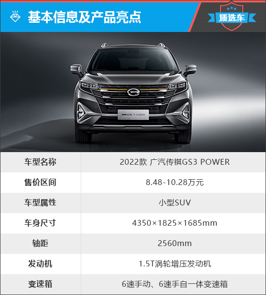 消費(fèi)者往往對于小型SUV的需求比較復(fù)雜,首先是價(jià)格要實(shí)惠,畢竟主力消費(fèi)者是年輕人,一般預(yù)算不會太高。同時(shí),選擇SUV就代表要有一定的通過性,并且年輕人對顏值和配置也有較高要求,這就導(dǎo)致小型SUV既要保證價(jià)格合理又要功能全面。面對這個(gè)看似不可能完成的任務(wù),廣汽傳祺的解決方案是傳祺GS3 POWER,它精簡了自己的產(chǎn)品陣容,并新增了如華為HiCar智能手機(jī)互聯(lián)等功能,產(chǎn)品力進(jìn)一步得到完善。那么這些進(jìn)步是否能助2022款廣汽傳祺GS3 POWER緩解困局呢?本期質(zhì)選車將為您詳細(xì)解讀。