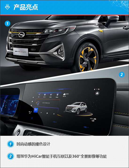 外觀方面,新款廣汽傳祺GS3 POWER延續(xù)了“凌云翼3.0”家族式設(shè)計(jì),大尺寸前格柵內(nèi)部依然為橫向造型,還新增了大量黃色裝飾,包括翼子板裝飾以及輪圈等,撞色設(shè)計(jì)更顯年輕與動(dòng)感。