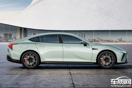 車輛側(cè)面造型簡潔且采用了雙腰線設(shè)計,C柱上方的鍍鉻條向車尾方向延伸,營造出懸浮式車頂?shù)男Ч。車身尺寸方面,新車長寬高分別為4980mm、1980、1450mm,軸距為2980mm。值得一提的是,該車的寬高比為1.36,在視覺上有著轎跑車的既視感,此外,該車風(fēng)阻系數(shù)僅為0.216Cd。