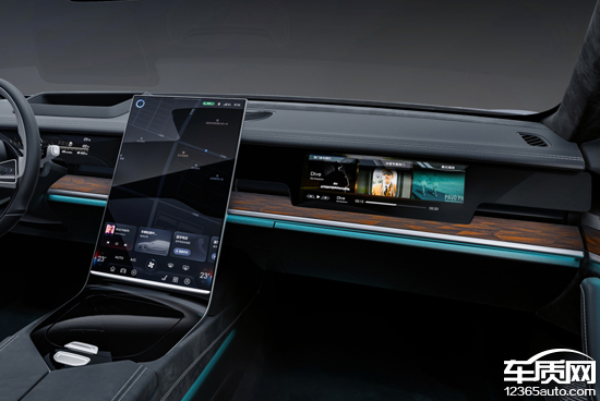 車輛內(nèi)飾整體造型同樣簡潔,中控臺采用了大量軟質(zhì)材料包裹,配合木紋飾條增加了檔次感。值得一提的是,該車還配有17.6英寸中控屏、12.3英寸、AR-HUD以及全液晶儀表,并支持四屏聯(lián)動,大幅增加了科技氣息。