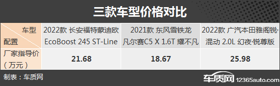 今天,我們?yōu)榇蠹姨暨x出三款擁有鮮明特征的運(yùn)動(dòng)中型車,其中包括剛上市不久的長(zhǎng)安福特全新一代蒙迪歐(以下簡(jiǎn)稱:蒙迪歐),以及雪鐵龍?jiān)谌A的翻身之作凡爾賽C5 X,還有一款大家的老朋友——第十代雅閣(以下簡(jiǎn)稱:雅閣)。選取三款車的頂配車型進(jìn)行比較,蒙迪歐和雅閣售價(jià)均以突破20萬(wàn)元大關(guān),而凡爾賽C5 X售價(jià)不到19萬(wàn)元,性價(jià)比稍稍占優(yōu)。三款車具體表現(xiàn)如何,請(qǐng)大家往下看。