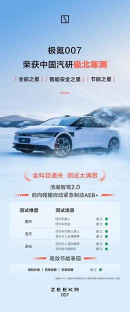 極氪007低溫性能獲得中國汽研權威認證